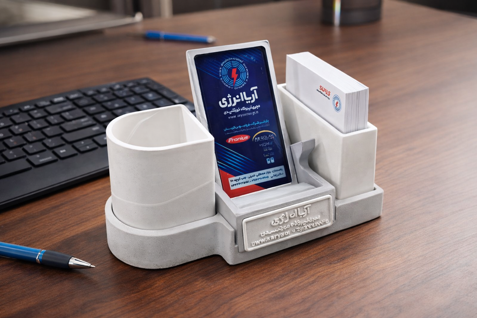 علاوه بر این، نماتندیس قابلیت حک برجسته لوگو و تبلیغات شما با متریال خود بتن و هماهنگی رنگی چشم‌نواز را فراهم کرده است؛ ویژگی‌ای که این ست رومیزی را کاملاً اختصاصی و ماندگار می‌سازد.